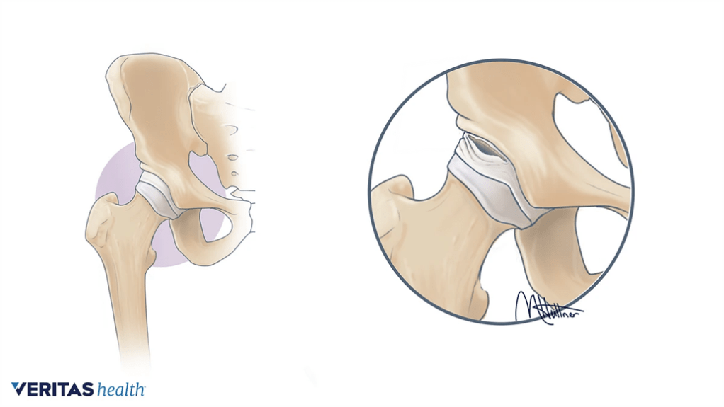 Ég fór að lesa mér til um labral tear því ég hafði aldrei heyrt um það fyrr. Í afar einföldu máli þá gerist það að liðvör (sem mér sýnist helst líkjast „pakkningu“ utan um mjaðmaliðinn) rifnar aðeins. Þetta getur líka gerst á axlarlið og er mun þekktara. Talið er að mikið álag geti valdið þessu (t.d. hjá íþróttafólki) en líka geta verið einhverjar beinnibbur sem erta liðvörina og valda verk.